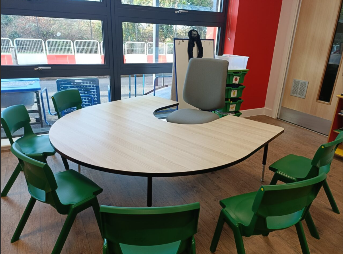 The classroom was furnished with desks and chairs to create a calm, practical environment that supports everyday learning.